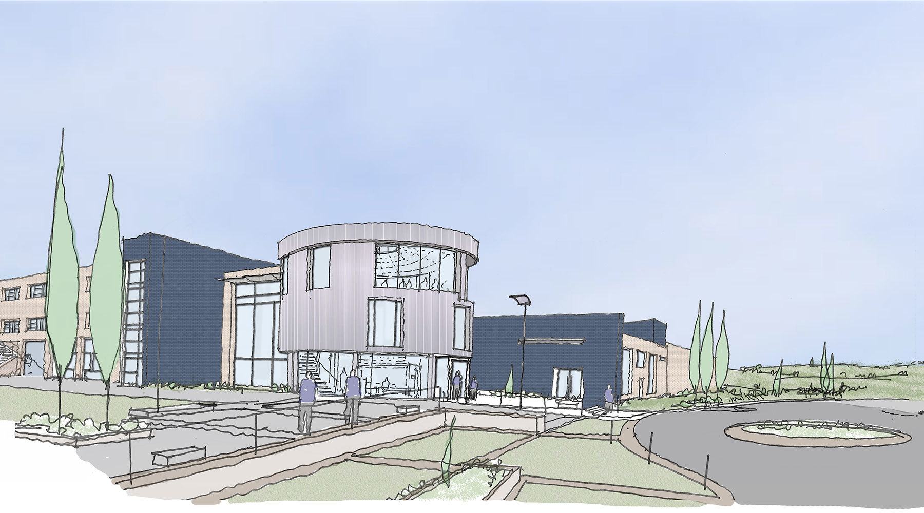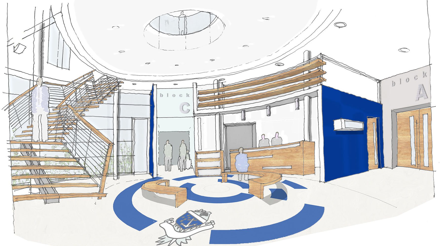 The glazed entrance Rotunda contains the main entrance, reception areas, and senior management offices. To facilitate wayfinding, the teaching blocks are anchored to this and the multi-purpose hall and library are conveniently located.