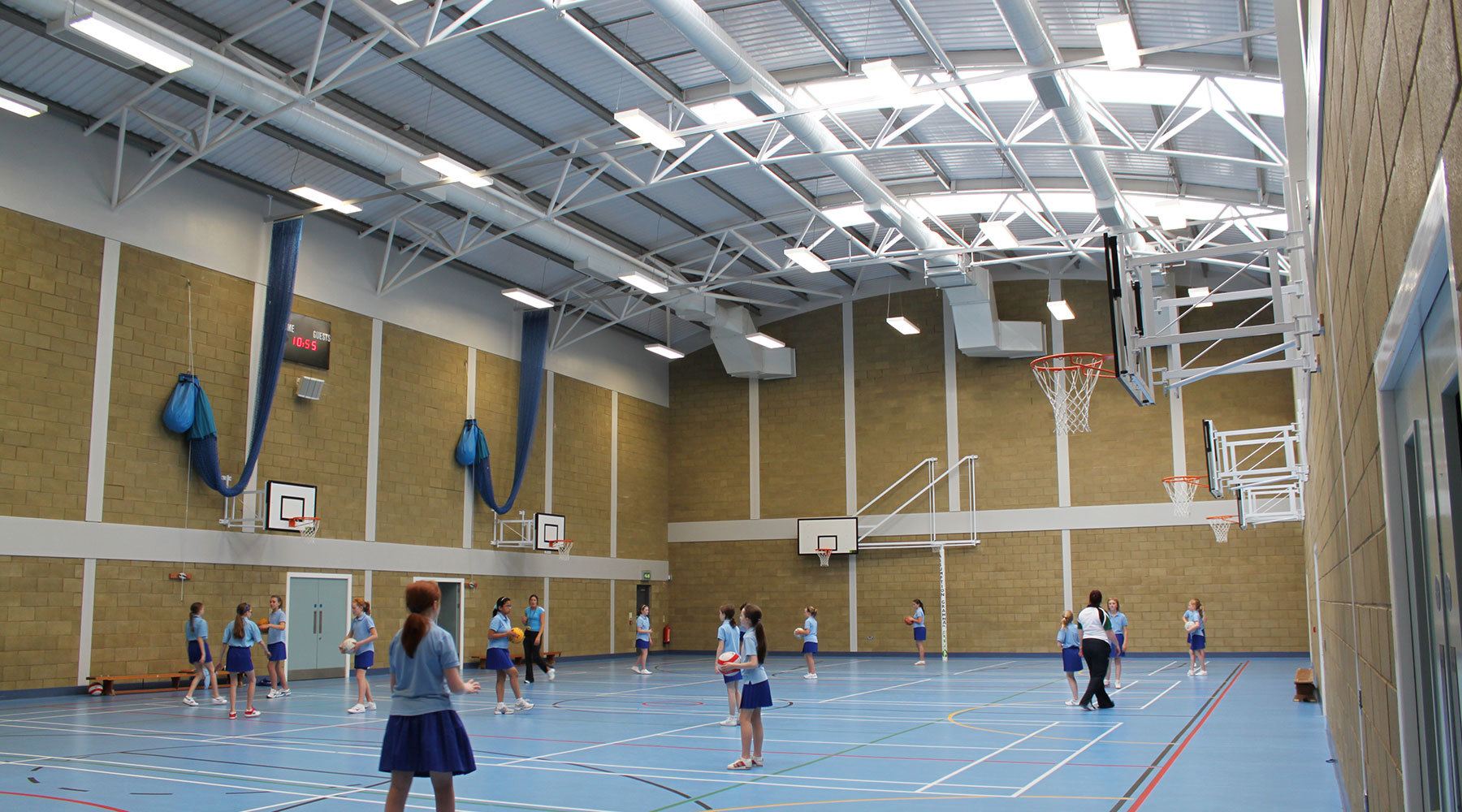 The school also has an enhanced Physical Education Department with a large sports Hall, a Multi-Use Games Area (MUGA) and synthetic playing field. This was intended to allow for the possibility of community/third party usage. Externally the blue brick, glass and standing seam zinc entrance provides an interesting backdrop for the yellow brick used to the classroom wings.