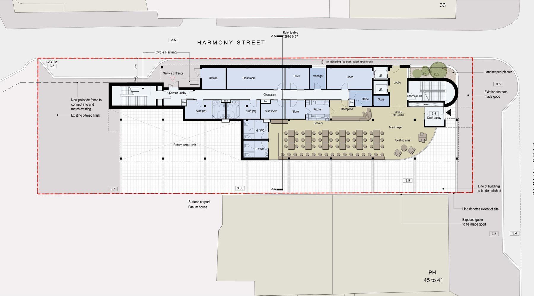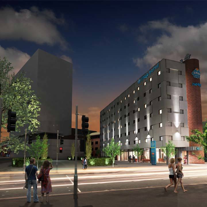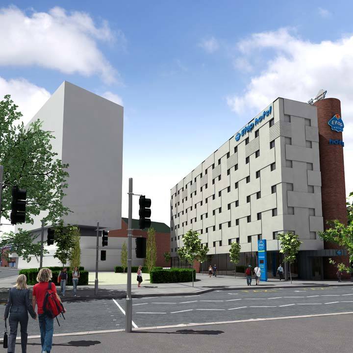 The seven-storey ETAP hotel scheme sits on a site off the bustling Dublin Road. The scheme is part of the larger South Bank Square Master Plan Scheme which seeks to reinvigorate the Upper Dublin Road and Great Victoria area of the city. Additional office accommodation and commercial space will be provided, along with a major public realm space which will act as a pedestrian and visual link between Dublin Road and Great Victoria Street.