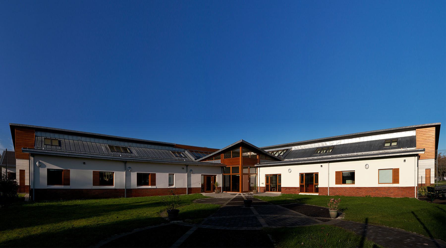 The development Masterplan created the conditions for a more informal, non-institutional environment providing single-storey buildings and materials which included slate and standing seam zinc to the roof; brick and render walls and timber windows and doors. Internally the spaces are characterised by abundant daylight, environmentally friendly finishes and a muted colour scheme.
